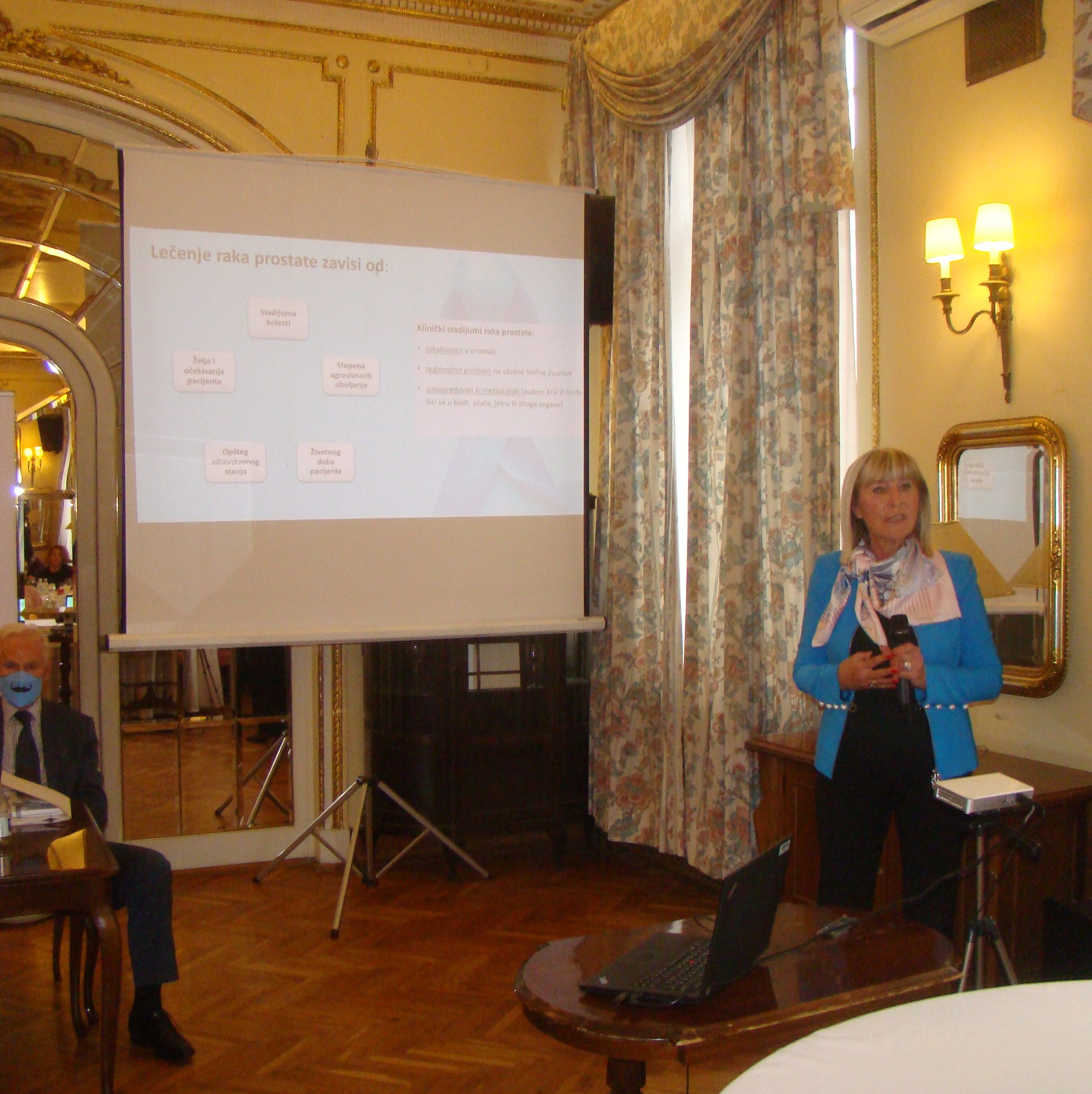 Naučni saradnik dr Nada Babović, medikalni onkolog i načelnik odeljenja za urološke tumore iz Instituta za onkologiju i radiologiju Srbije, navela je aktuelne terapijske opcije: “Lečenje raka prostate zavisi od stadijuma i agresivnosti bolesti, životnog doba i zdravstvenog stanja pacijenta, ali i od njegovih želja i očekivanja. U zavisnosti od proširenosti bolesti, karcinom prostate deli se na više kliničkih stadijuma. Može biti lokalizovan samo u prostati, ili regionalno proširen na okolne limfne čvorove. Može biti i uznapredovali ili metastatski, kada se putem krvnih ili limfnih sudova proširio u kosti, jetru, pluća ili druge organe. Izuzetno je važno što više individualizovati terapiju, za svakog pacijenta pojedinačno. Kada je tumor lokalizovan u prostati i niskog je rizika, pacijentu se mogu ponuditi tri opcije. Prva je aktivno praćenje (redovni kontrolni pregledi urologa, praćenje vrednosti PSA, po potrebi radiološka dijagnostika) čime se izbegavaju neželjeni efekti lečenja i ne ugrožava tok bolesti. Druga opcija koja predstavlja zlatni standard u lečenju ranog karcinoma prostate, je radikalna prostatektomija, tj. odstranjenje cele prostate. Treća opcija je radioterapija koja se primenjuje samostalno ili u kombinaciji sa hemijskom kastracijom, takođe u lokalizovanoj ili lokalno uznapredovaloj fazi bolesti. Hirurška kastracija, koja podrazumeva odstranjivanje testisa, i hemijska kastracija, koju čine lekovi koji blokiraju stvaranje muških hormona, predstavljaju tzv. androgen deprivacionu terapiju (ADT), višedecenijski primarni pristup u lečenju metastatskog karcinoma prostate. Na žalost, tokom ove terapije, bolest gotovo uvek dalje napreduje u kastraciono rezistentnu fazu. Zato, po evropskim i svetskim smernicama, androgen deprivaciona terapija više nije standard u ovoj fazi bolesti, već njena kombinacija sa hemioterapijom ili inovativnim lekovima koji deluju na androgene receptore (tzv. ARTA lekovi). Stoga je neophodno da pacijentima bude dostupna ova moderna i efikasna terapija u fazi hormonski osetljivog metastatskog karcinoma prostate, koja suštinski odlaže progresiju bolesti i produžava preživljavanje, uz očuvanje kvaliteta života, kao i socijalne i radne aktivnosti. Istovremeno, ovom terapijom se smanjuju troškovi nege i lečenja komplikacija bolesti kao što su, pre svega, koštane frakture ili kompresija kičmene moždine. Važno je napomenuti da pacijenti treba redovno da se kontrolišu kod nadležnog onkologa ili urologa koji procenjuje stanje njihove bolesti i po potrebi sprovodi određena ispitivanja, uključujući PSA i serumski testosteron.  U Srbiji su poslednjih nekoliko godina dostupni inovativni lekovi za pacijente u fazi metastatskog kastraciono-rezistentnog karcinoma prostate čime je značajno unapređeno njihovo lečenje. Ovim terapijama se znatno produžava život pacijenta i praktično se metastatski karcinom prostate prevodi u hroničnu, stabilnu bolest.”